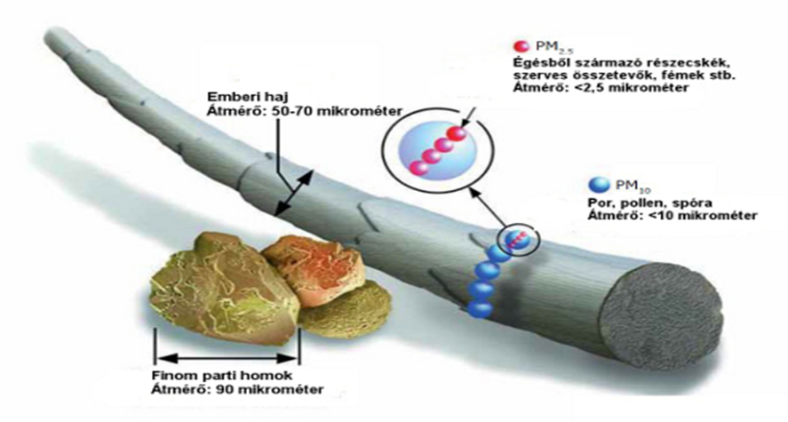 Az alapszennyezettséghez képest a füstben végig magasabb volt a kisebb részecskefrakció, a PM2,5 aránya, melynek egészségkárosító hatása jelentősebb (minél kisebb ugyanis a részecske mérete, annál mélyebbre tud behatolni a légzőrendszerbe). A kisebb részecskék részaránya különösen az égés kezdetekor dominált, az égés folyamán némileg csökkent, de magas maradt, ahogy a következő ábrán látható.