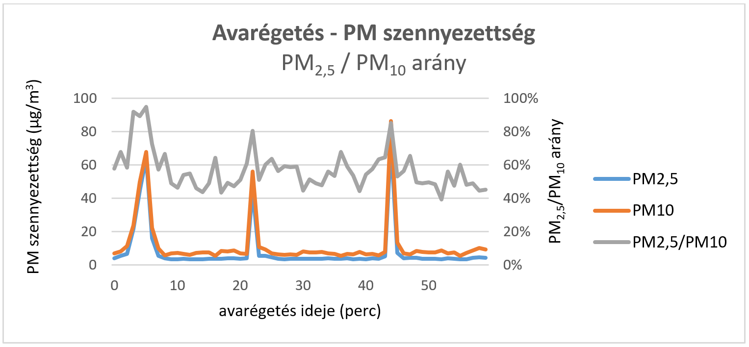 Összegzésként elmondhatjuk, hogy bár a mérés alapvetően a szálló por részecskeszámát mérő műszerek tesztelését segítette, ebben az esetben is bizonyította, hogy az avarégetés nagymértékben növeli a PM szennyezettséget.